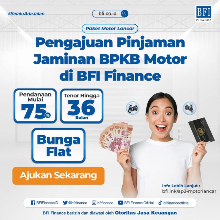 Dengan rate angsuran ringan, proses cepat, beres di hari yang sama. Mulai 2 juta hingga 50 juta, dengan tenor mulai 6 bulan hingga 36 bulan. Ditangani Langsung Oleh Leasing Yang Terdaftar dan Diawasi oleh OJK.
